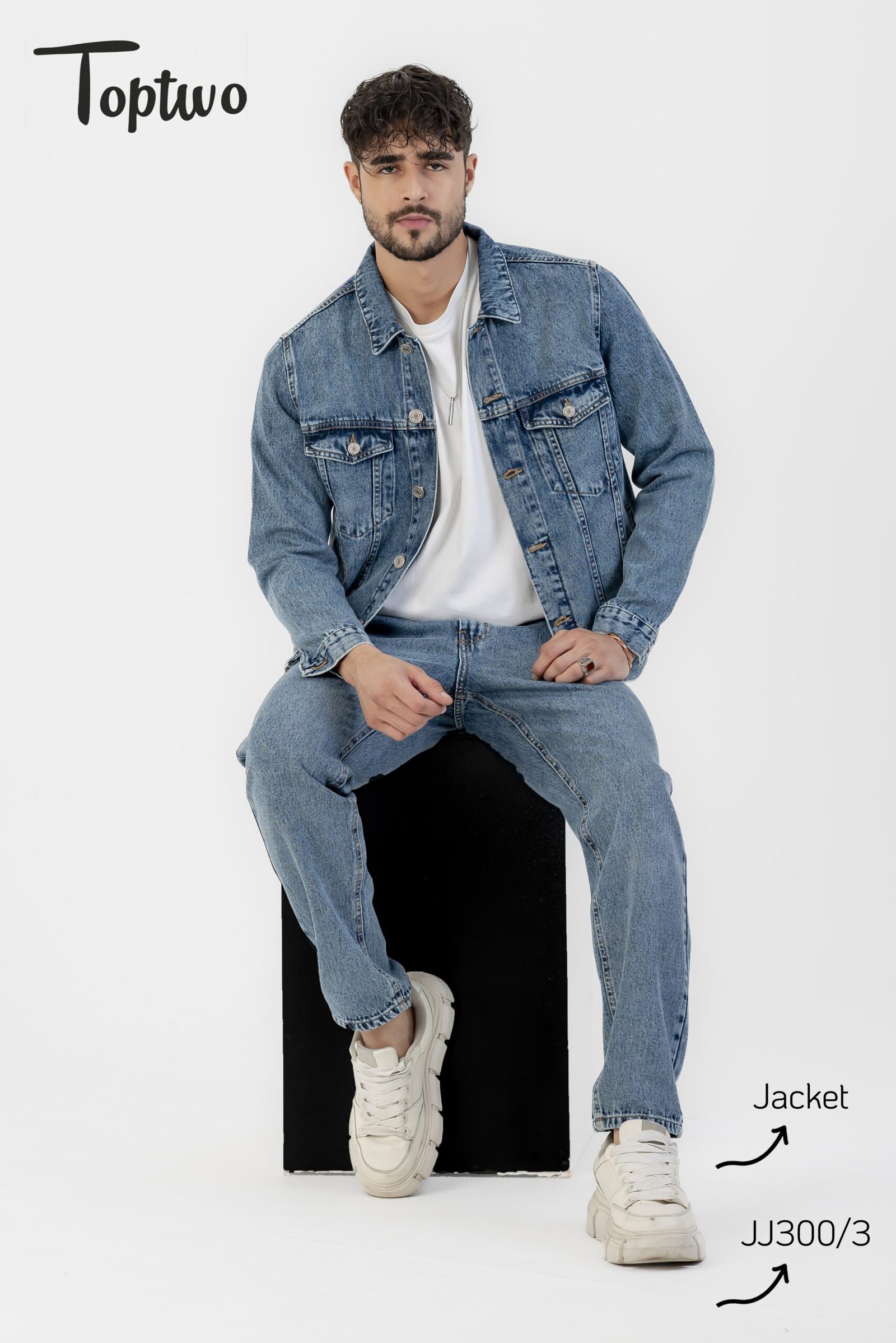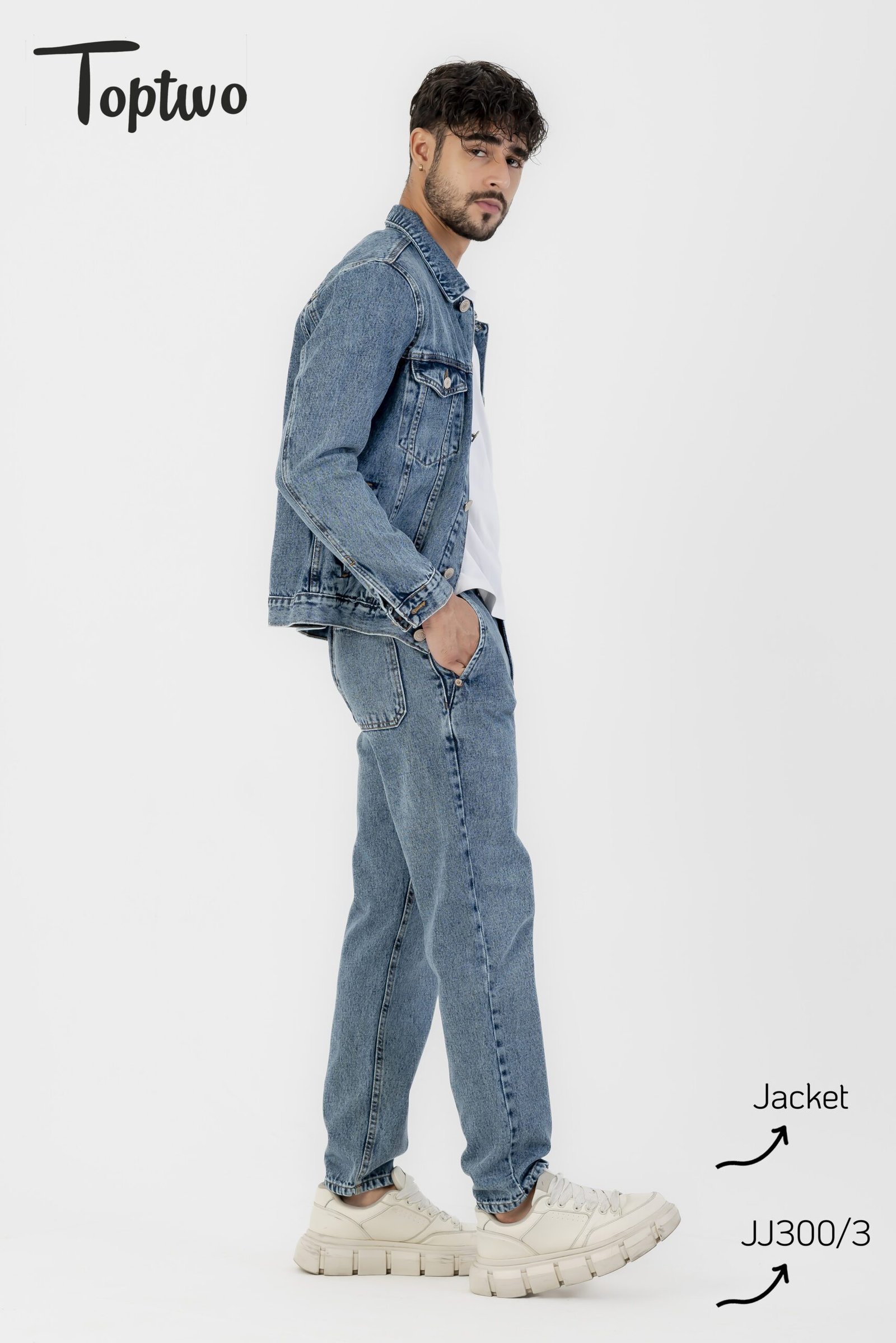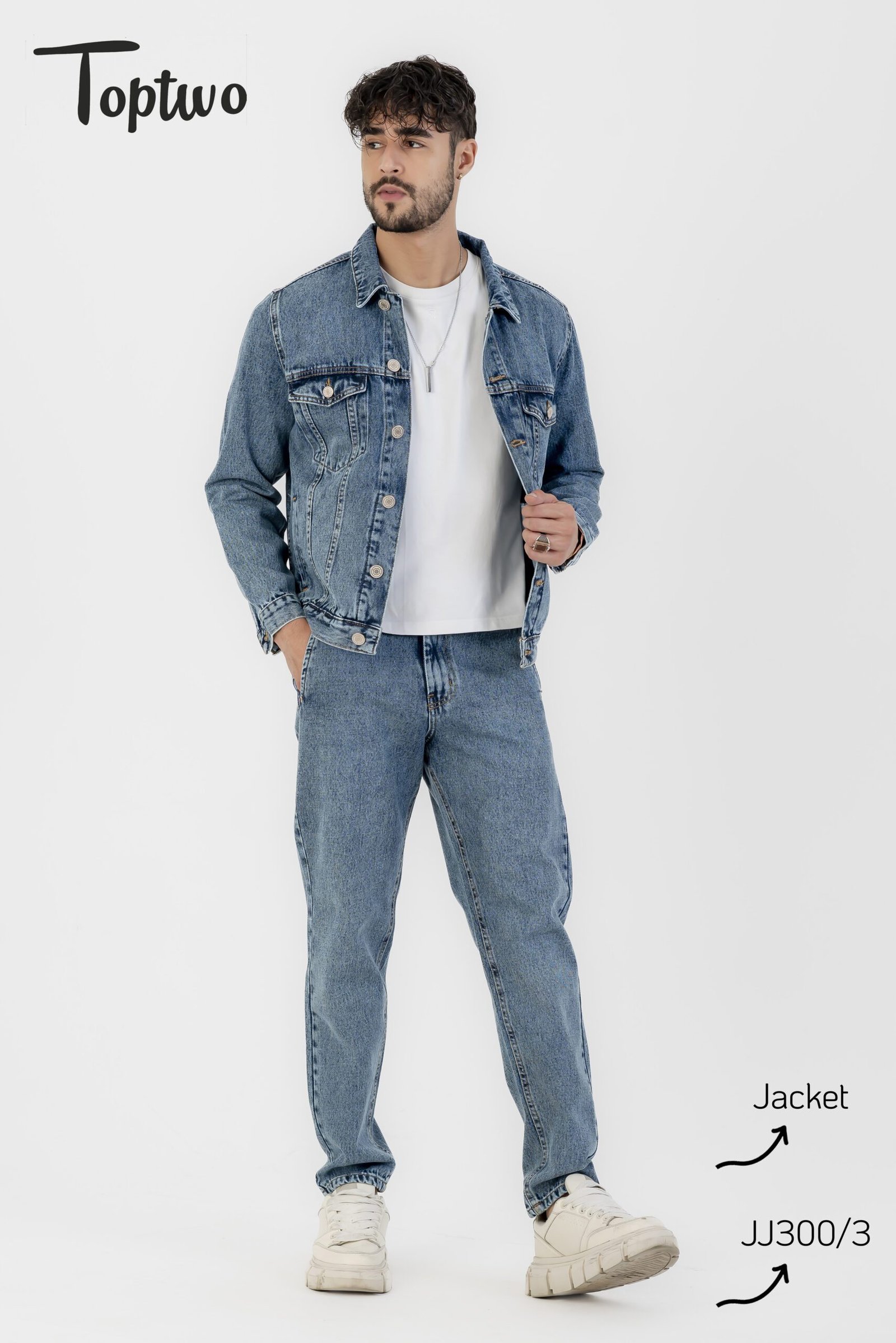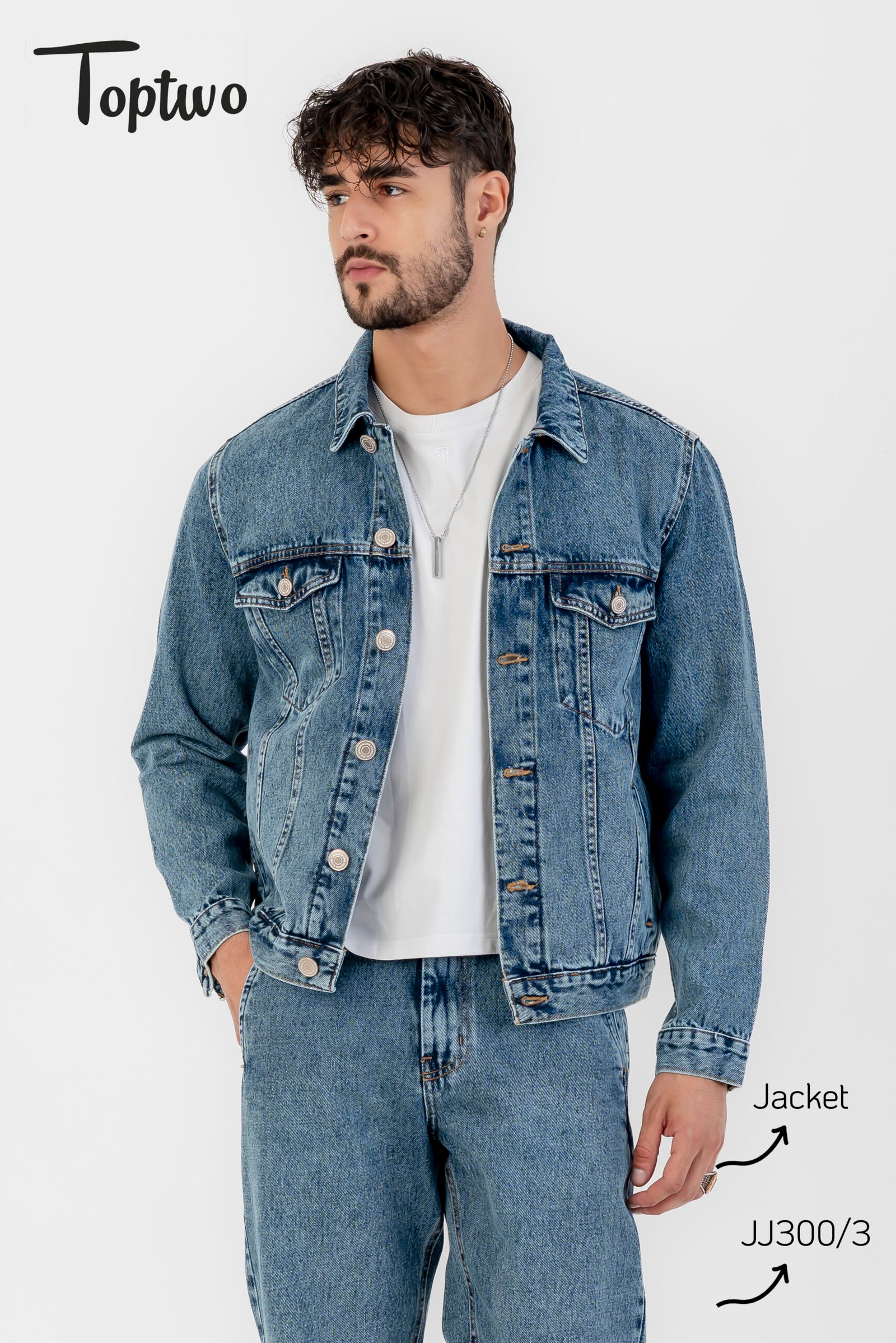 جاكيت جينز رجالي بلون الأزرق الفاتح تصميم بسيط وأنيق مع جيوب أمامية كبيرة وأزرار، مناسب للإطلالات اليومية