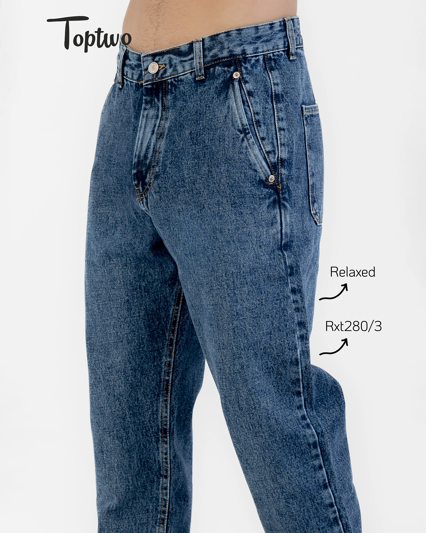 بنطال جينز رجالي بقصّة كلاسيكية مناسبة، قماش جينز متين بلون أزرق مميز، تصميم عملي بجيوب جانبية وخلفية، مناسب للاستخدام اليومي ويمنح حرية حركة ممتازة