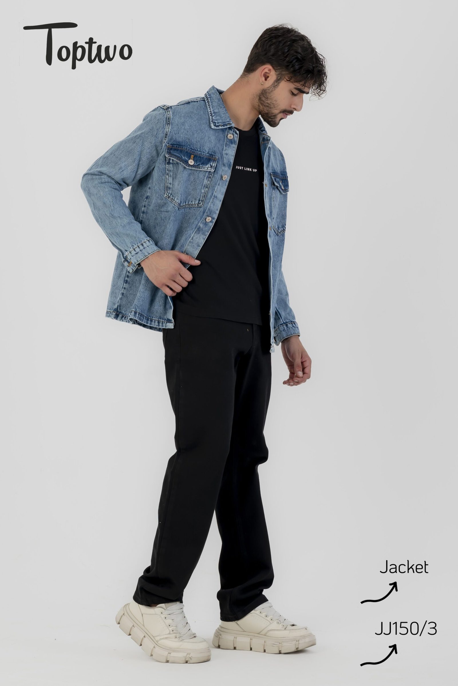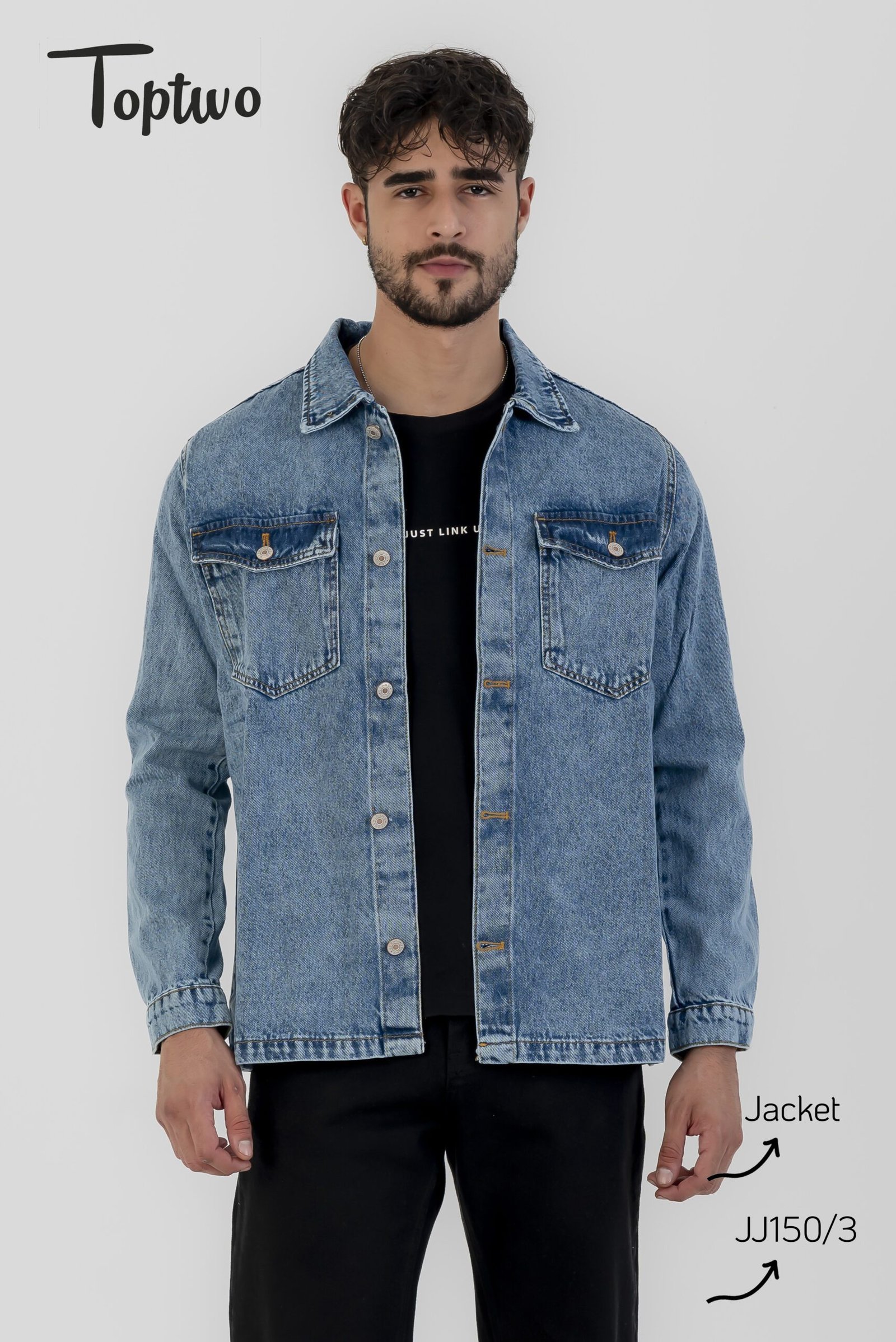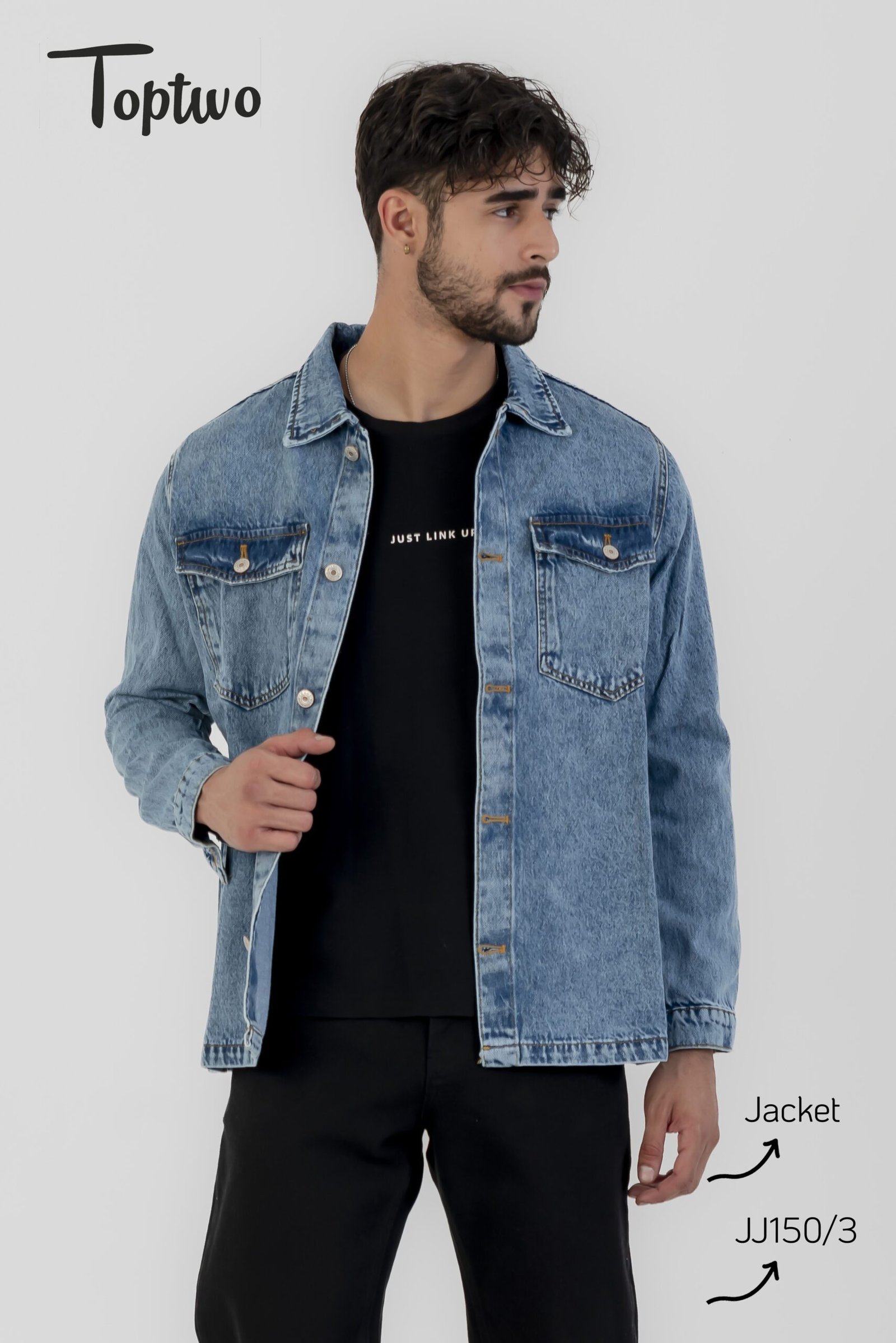جاكيت جينز رجالي تصميم بسيط وأنيق مع جيوب أمامية كبيرة وأزرار، مناسب للإطلالات اليومية